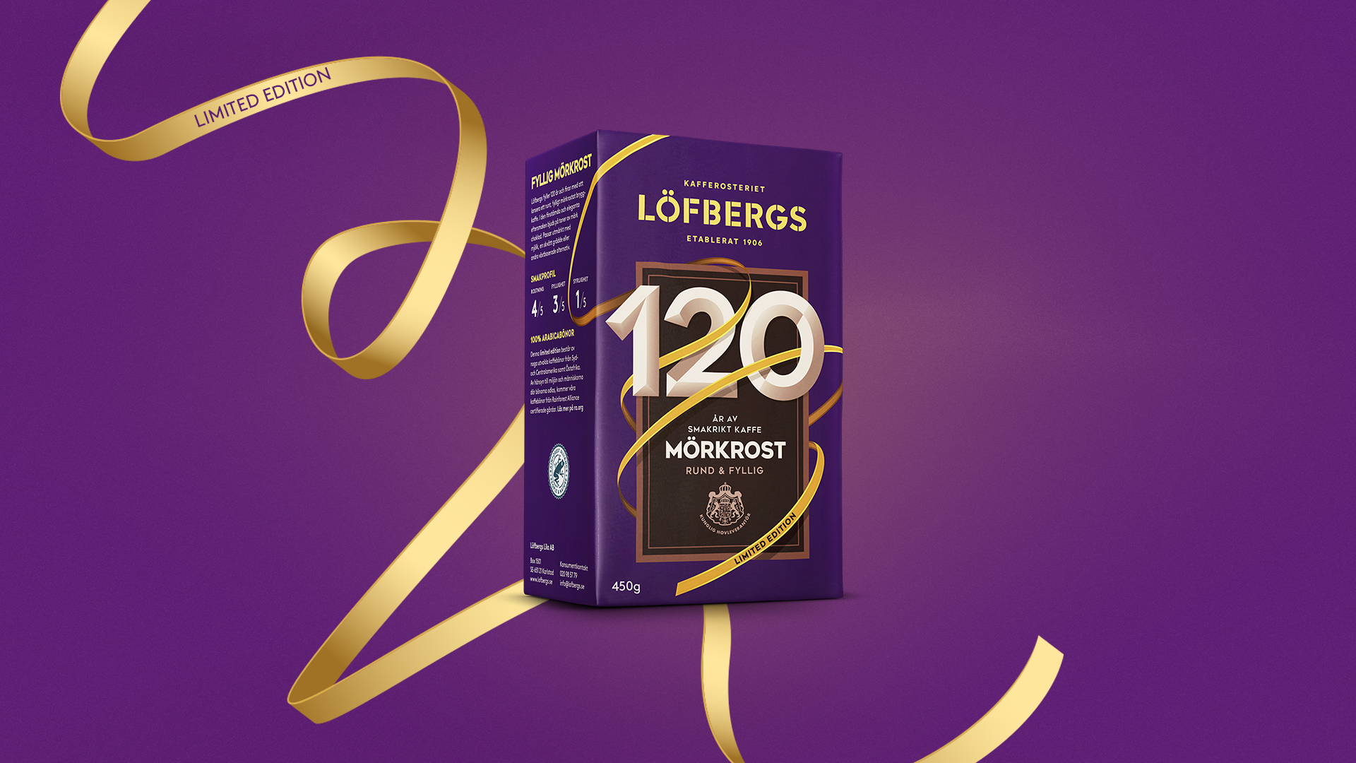 Sedan 1906 har vi på Löfbergs rostat smakrikt kaffe för morgnar, fikastunder och kalas. Nu firar vi 120 år av smakrikt kaffe med en fyllig och rund nyhet, som är på tillfälligt besök i vår mörkrostade sortiment.